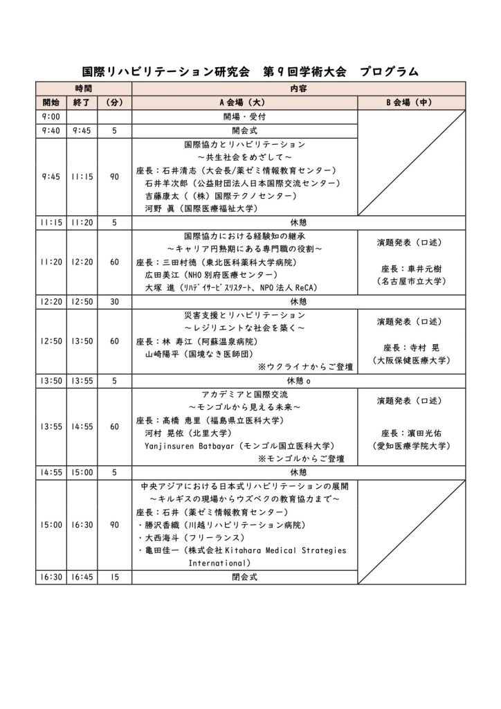 など、さまざまな国々におけるリハ分野の取り組みが紹介される予定です。