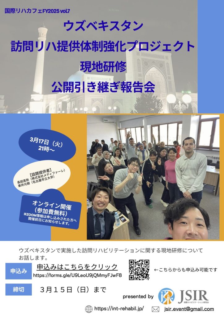 国際リハカフェ2025 vol.7 ウズベキスタン訪問リハ提供体制強化プロジェクト現地研修 公開引き継ぎ報告会